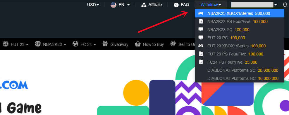 1. Accedi al tuo account utente prima di effettuare un ordine (registrati se non ne hai uno). Fai clic sul pulsante "Monete NBA 2K23 MT".